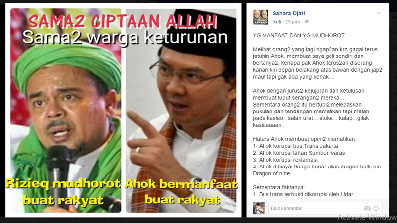 Kalau kamu mau mendustakan AHOK, pake nalar dan bukti2 dong... jangan pake tuduhan palsu...apalagi memprovokasi pengikutmu dengan dusta2 ala dajjal.... itu namanya PEKOK... ambisimu menjatuhkan Ahok hanya akan menjadi sia2... sebab banyak warga muslim jakarta yg tiap malam bermunajat kpd Allah SWT, agar Gubernur mulia ini dilindungiNya dari kejahatan2 kalian....